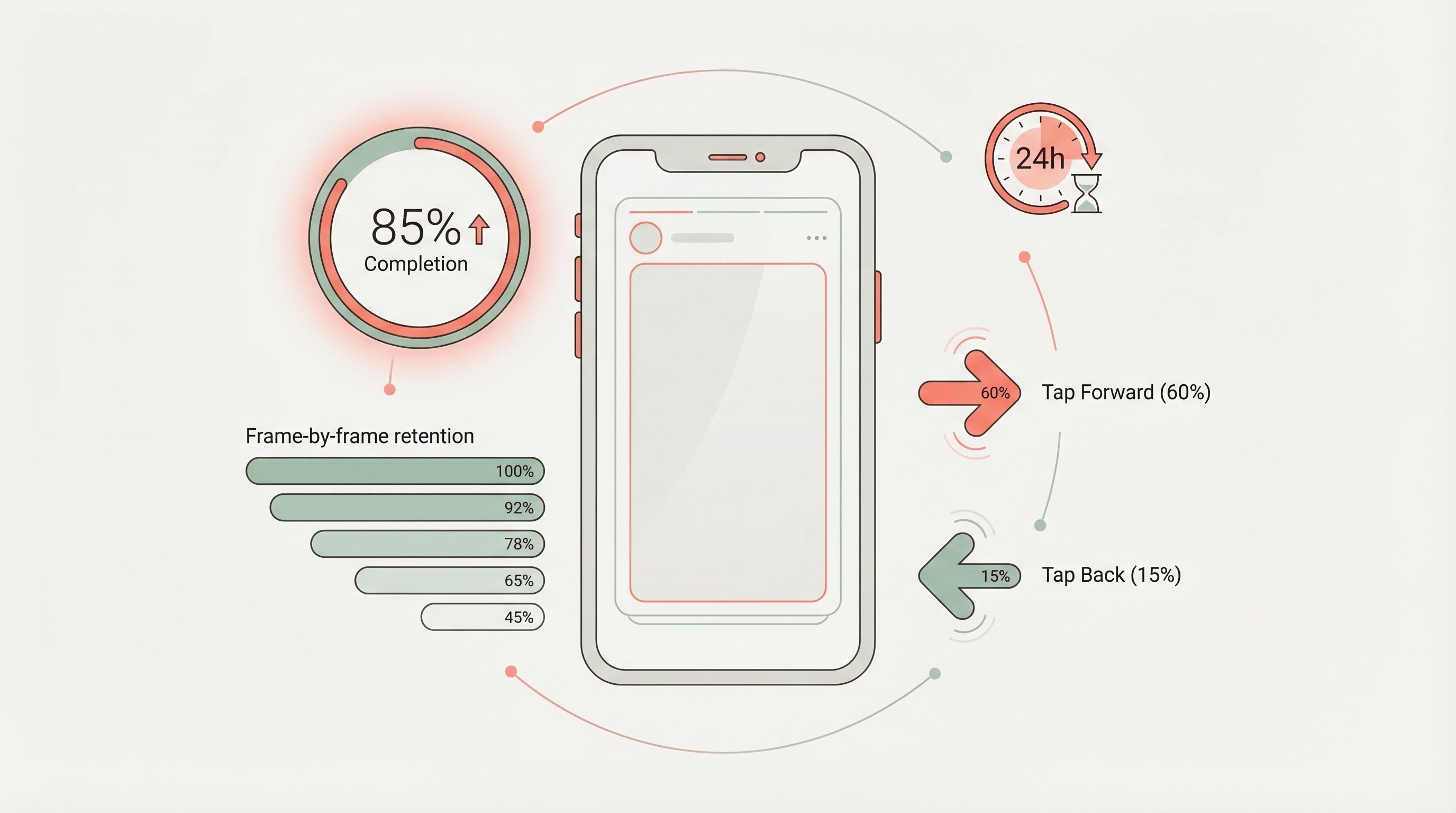 Tap-back rate: High tap-backs are actually positive — viewers are re-reading or re-watching a frame, which signals interest.